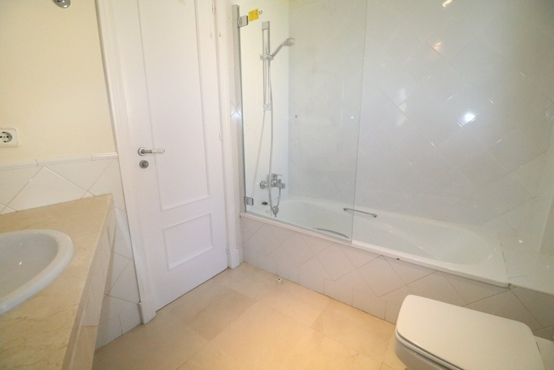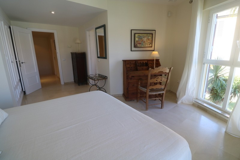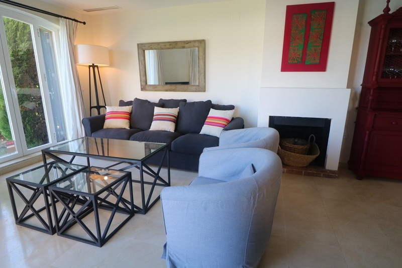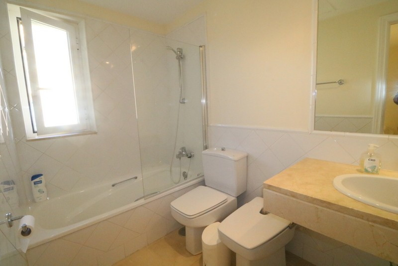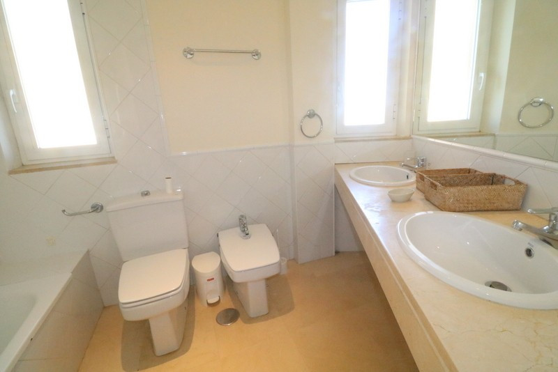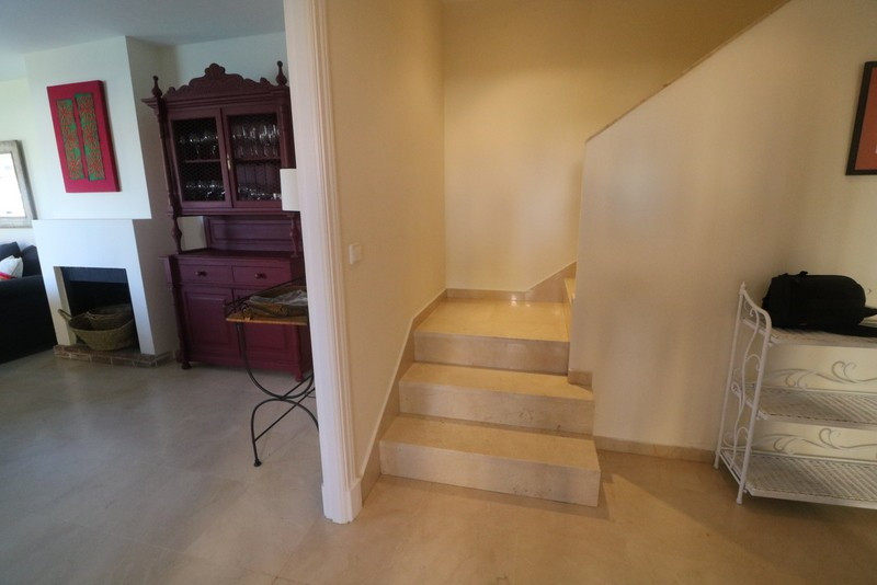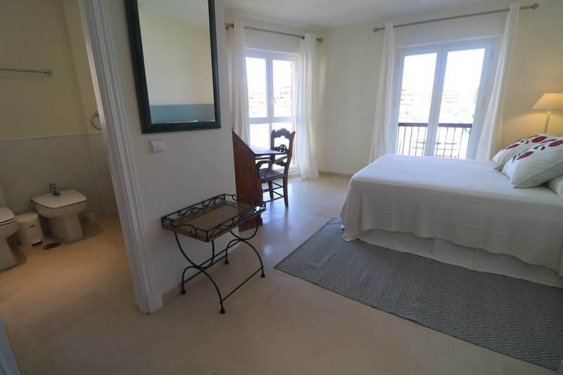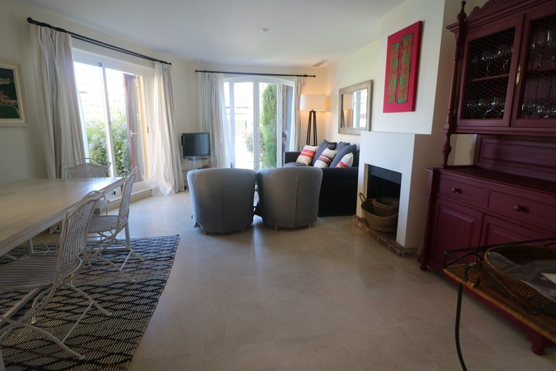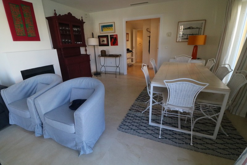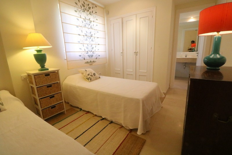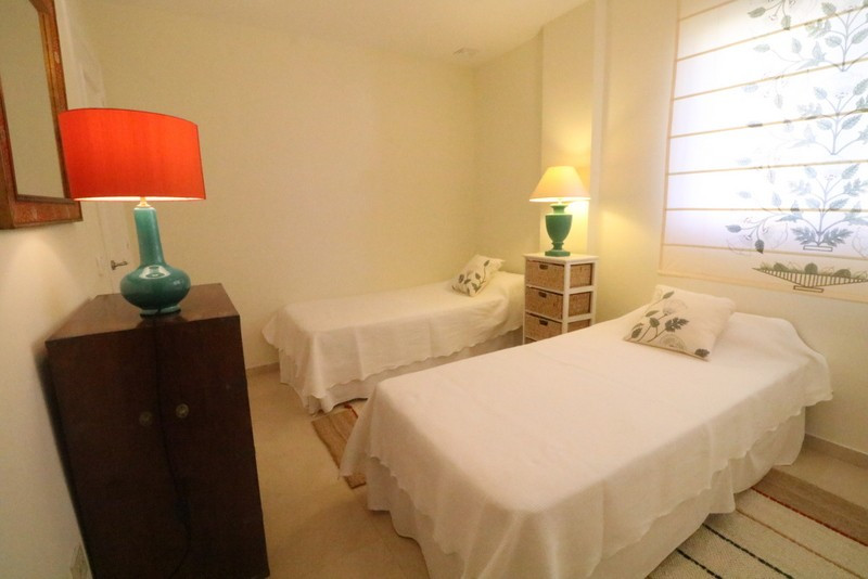 Two-storey apartment of 2 bedrooms and 2 bathrooms. On the ground floor there is a Living/dining area, cloakroom, fully fitted kitchen, terrace with access to a private garden. Private Garage. On the first floor there are 2 double bedrooms with 2 bathrooms. Litle stor/dresing room. Air conditioning and heating. The apartment it is located next to the beach and very close of the Beach and Tennis Club . Marina views.