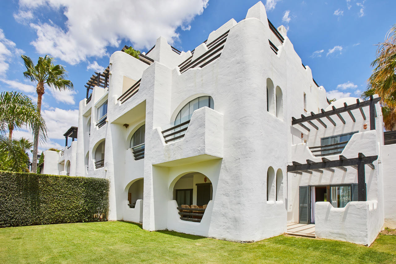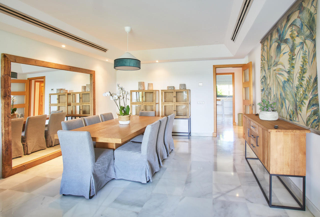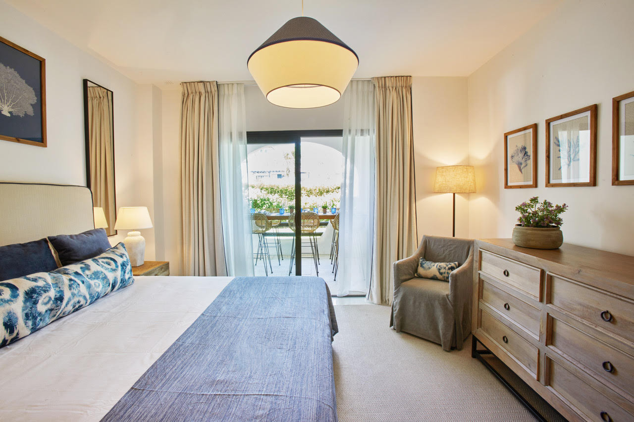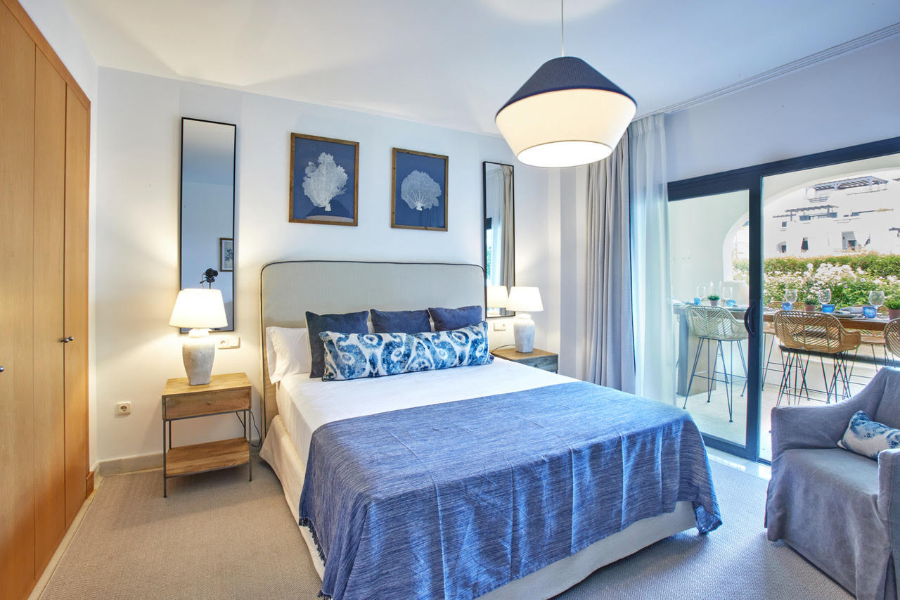 Apartamento situado en la plata baja de 4 dormitorios y 3 baños. Se compone de salón/comedor con acceso a una amplia terraza y al jardín, cocina completa, 2 plazas de garaje, aire acondicionado y calefacción. Piscina comunitaria, pistas de paddle. Gimnasio. Seguridad privada.