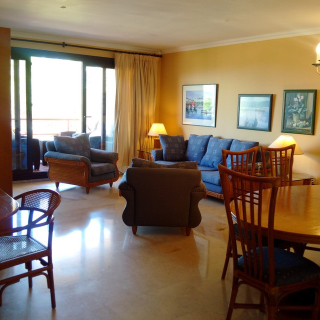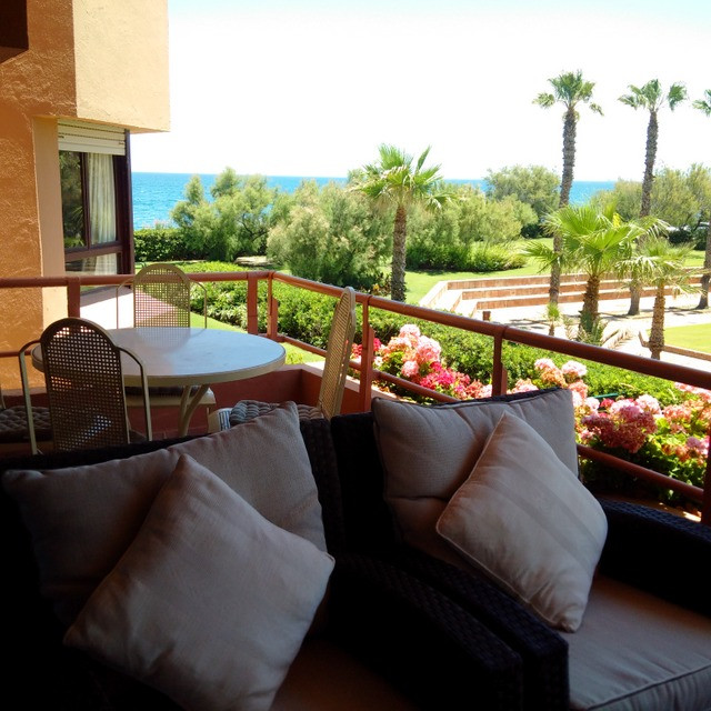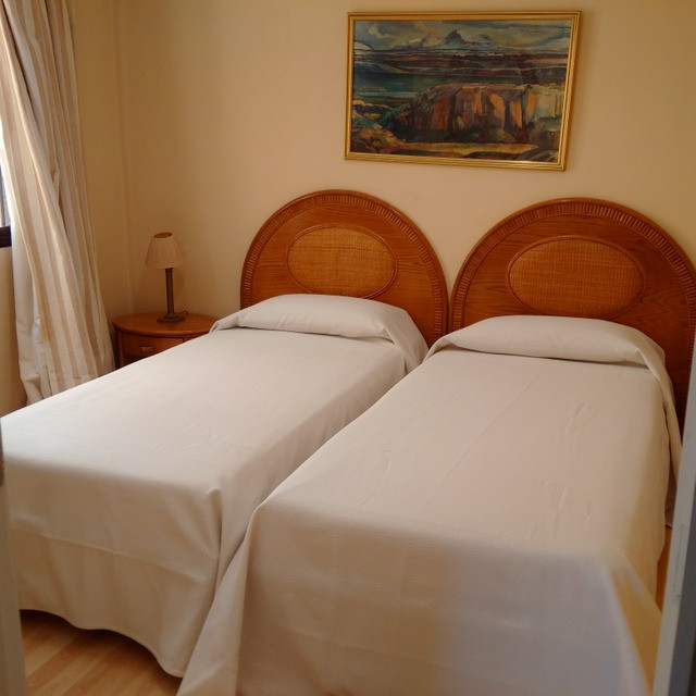 Apartamento situado en la primera planta de 3 dormitorios y 2 baños en los Apartamentos Playa con vistas al mar. Consta de 3 dormitorios y 2 baños, salón comedor, cocina completa. Aire acondicionado y calefacción. El apartamento se encuentra junto a la playa y Club de Playa y Tenis El Octógono.