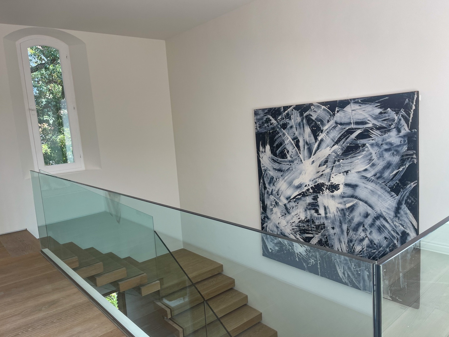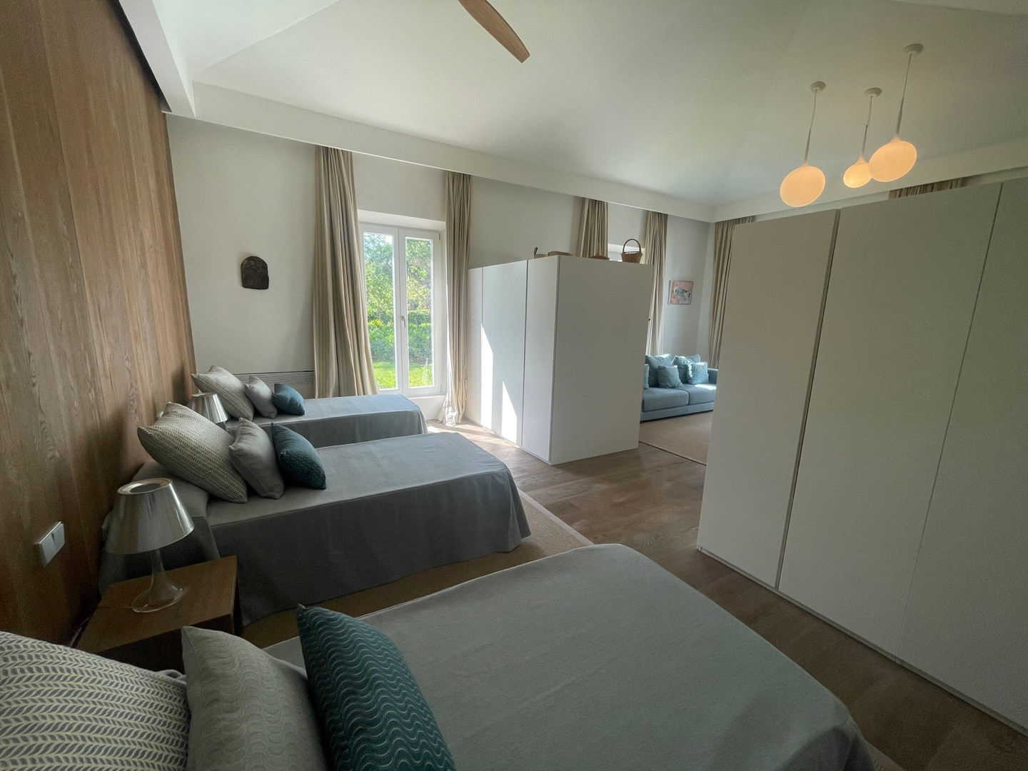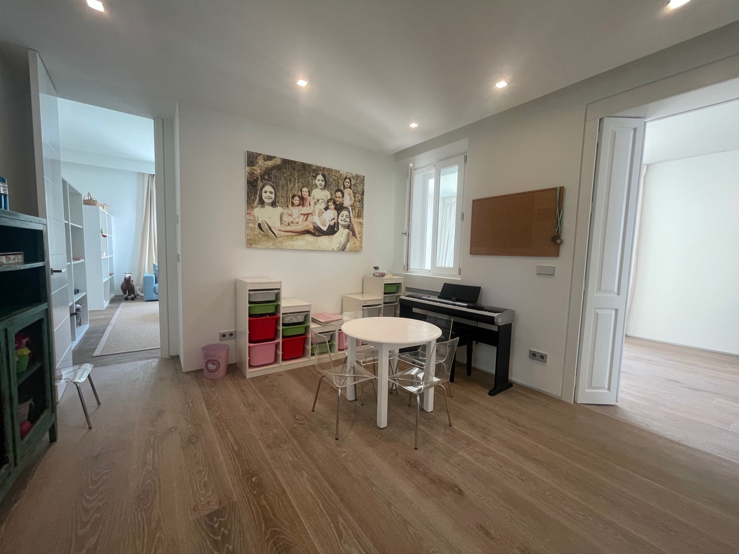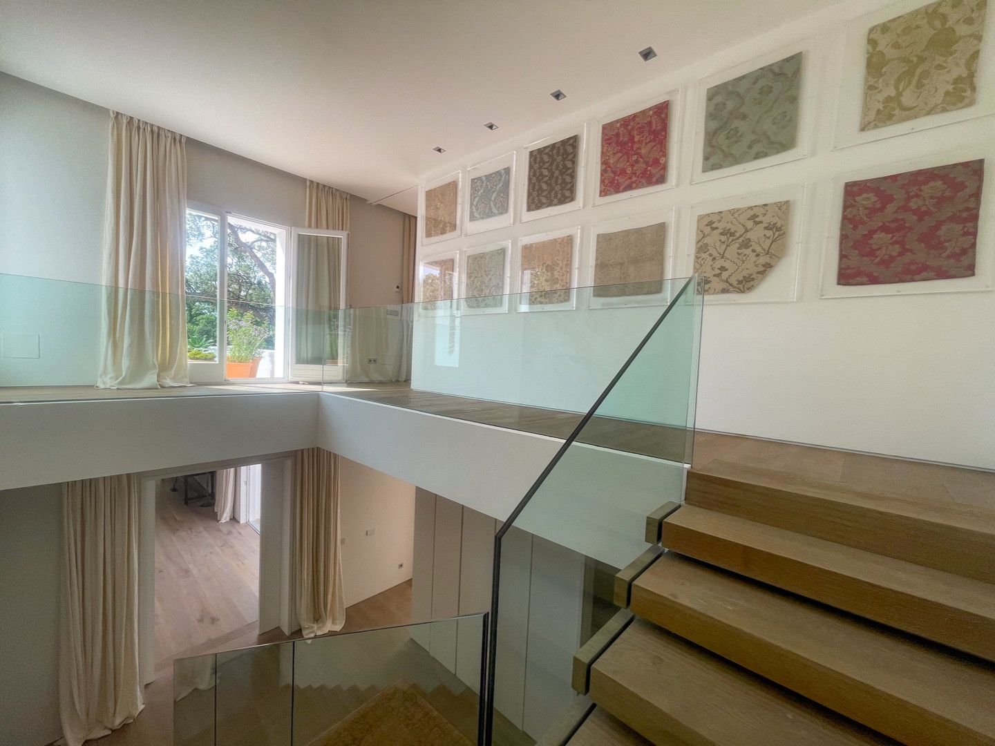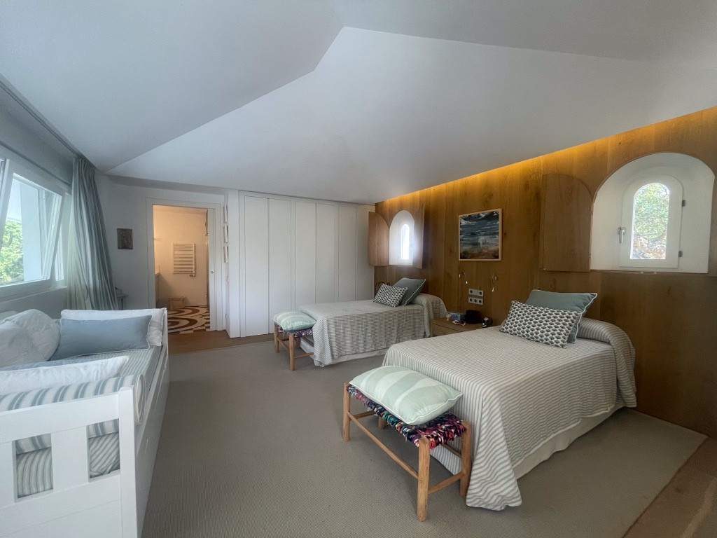 La casa está distribuida en dos plantas. En la la planta baja y desde el gran hall de entrada se distribuye toda la casa. A la derecha del hall, se encuentra un amplio salon con dos ambientes magníficamente decorados, así como el resto de la casa con acceso a grandes porches y terrazas. A continuación está el magnifico comedor independiente dando a la piscina y a. otras terrazas. Hay otro comedor más informal junto al la cocina y el office y la cocina, que está completamente equipada con varios frigoríficos y congeladores. Dispone de una zona de servicio con salón y dos dormitorio doble con cuarto de baño. Zona de lavadero. Desde el hall de entrada antes mencionado y donde hay un aseo de invitados, se accede a un dormitorio doble con cuarto de baño incluido y a continuación y a través de una galería con un patio descubierto a la derecha, a la izquierda se encuentra la zona para jóvenes que está compuesta por 2 dormitorios dobles, ambos con cuartos de baños incluidos y zonas de entretenimiento. En la planta superior encuentra la gran suite principal. También en la planta alta y con acceso desde el exterior, hay dos cuartos dos dormitorios y dos cuartos de baño con acceso a terrazas.