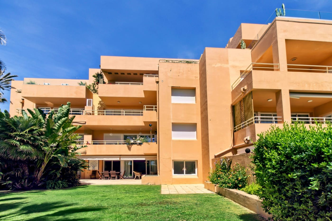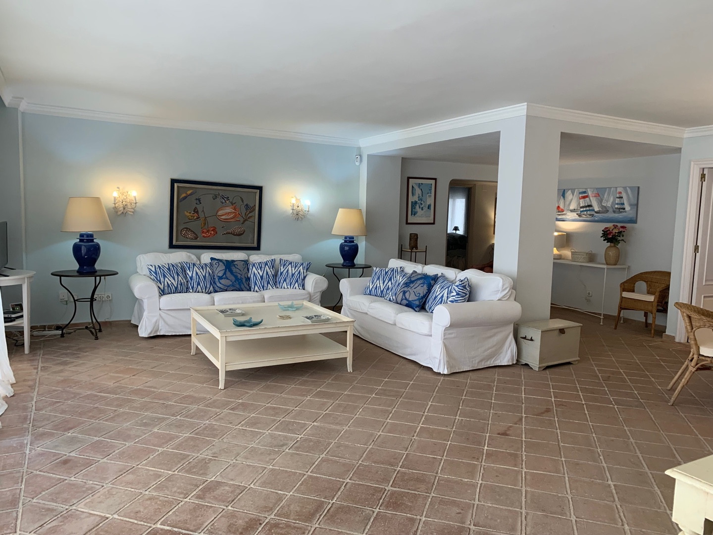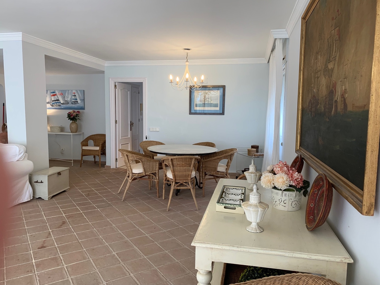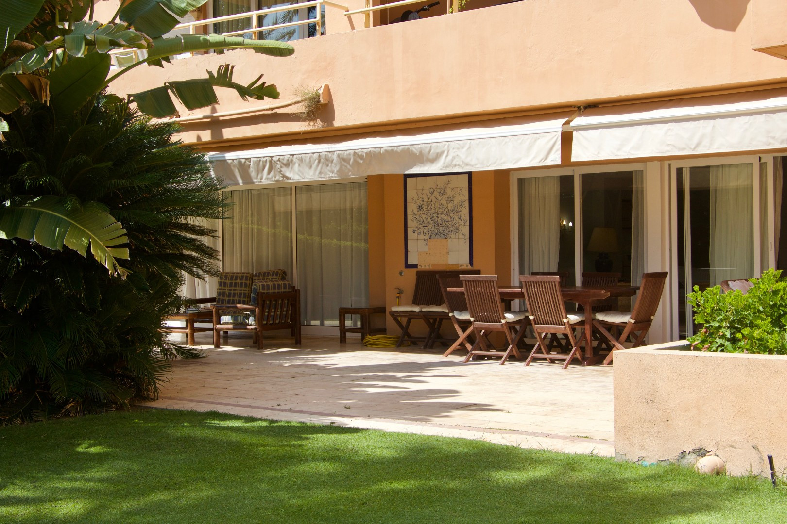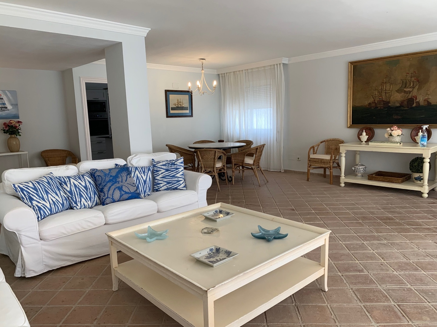 Apartamento situado en la planta baja con jardín privado orientado al sur. Consta de 4 dormitorios y 3 baños, salón comedor, cocina completa, terraza con jardín, 2 plazas de garaje. Se encuentra localizado muy cerca de la playa y a poca distancia club de playa y tenis el Octógono.