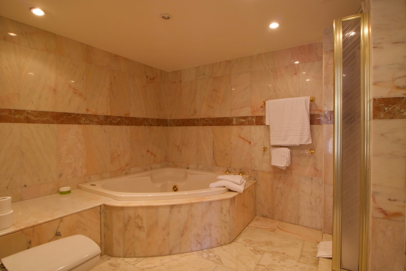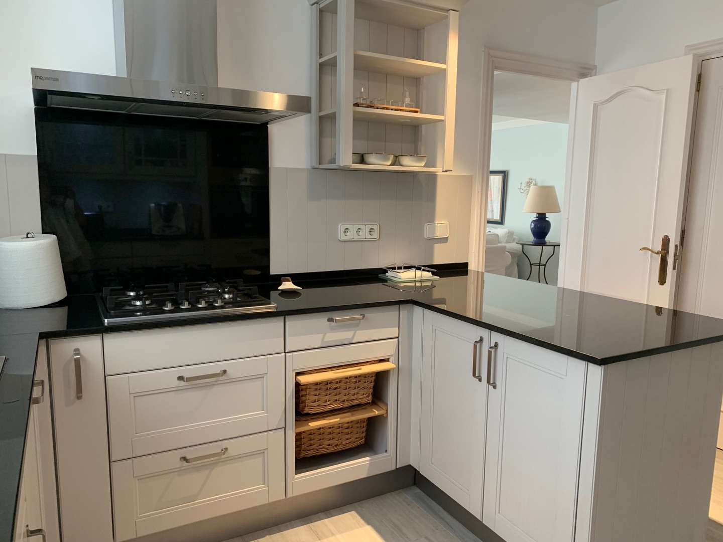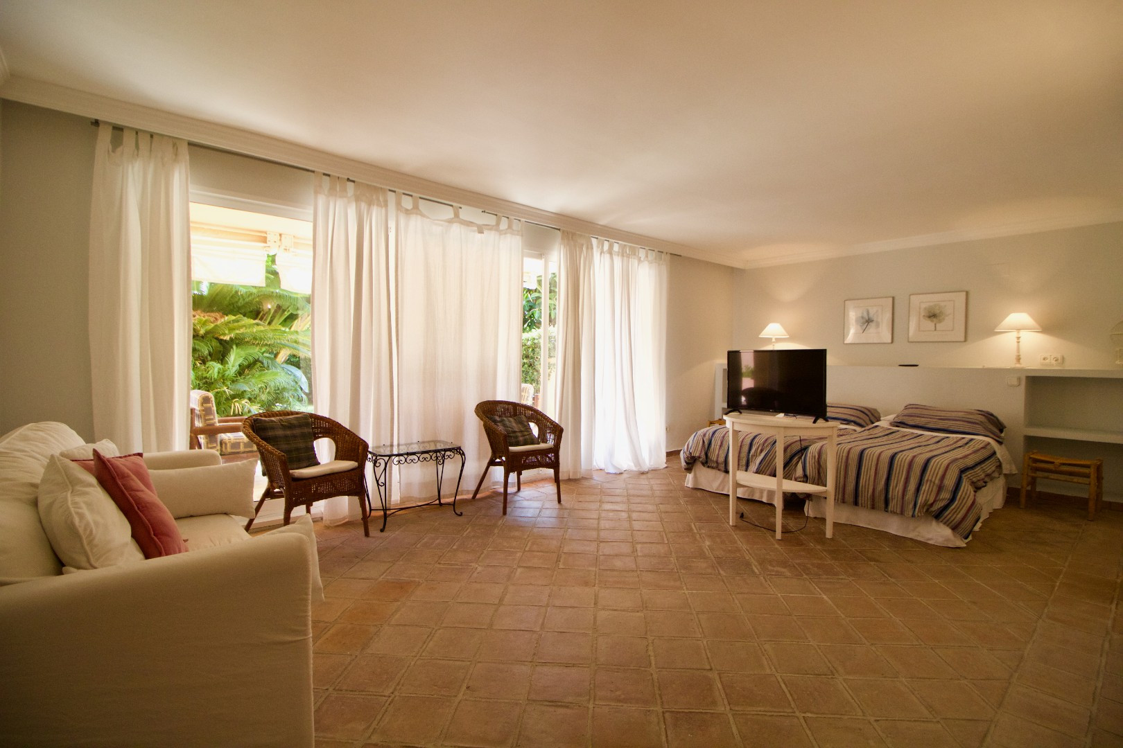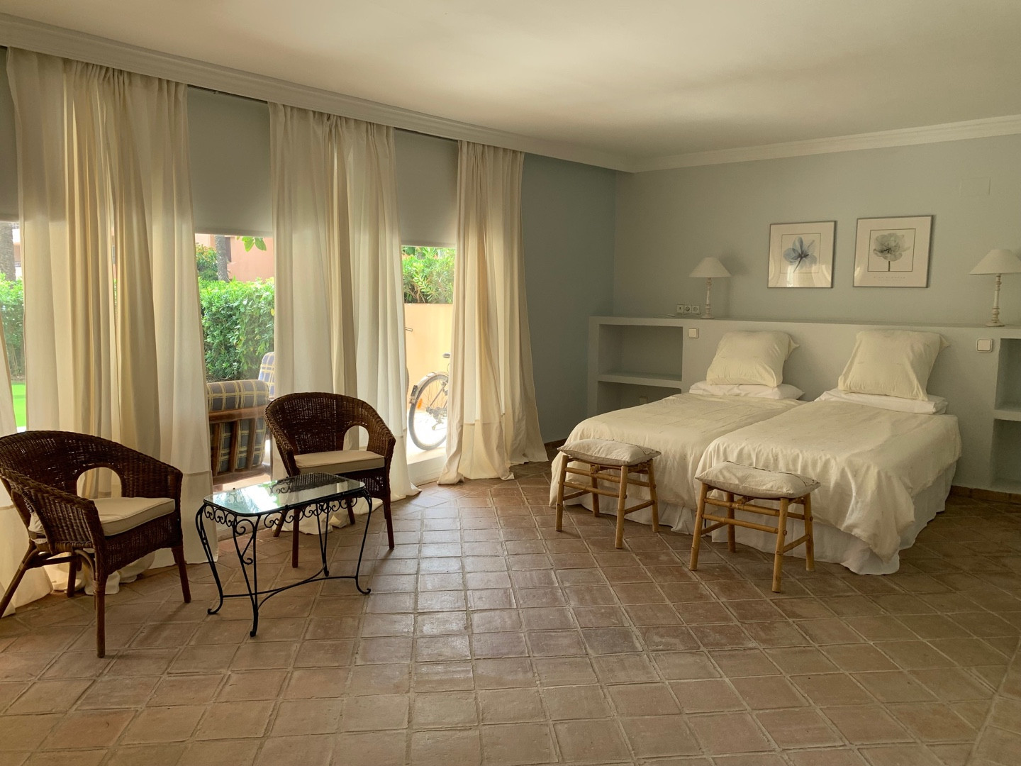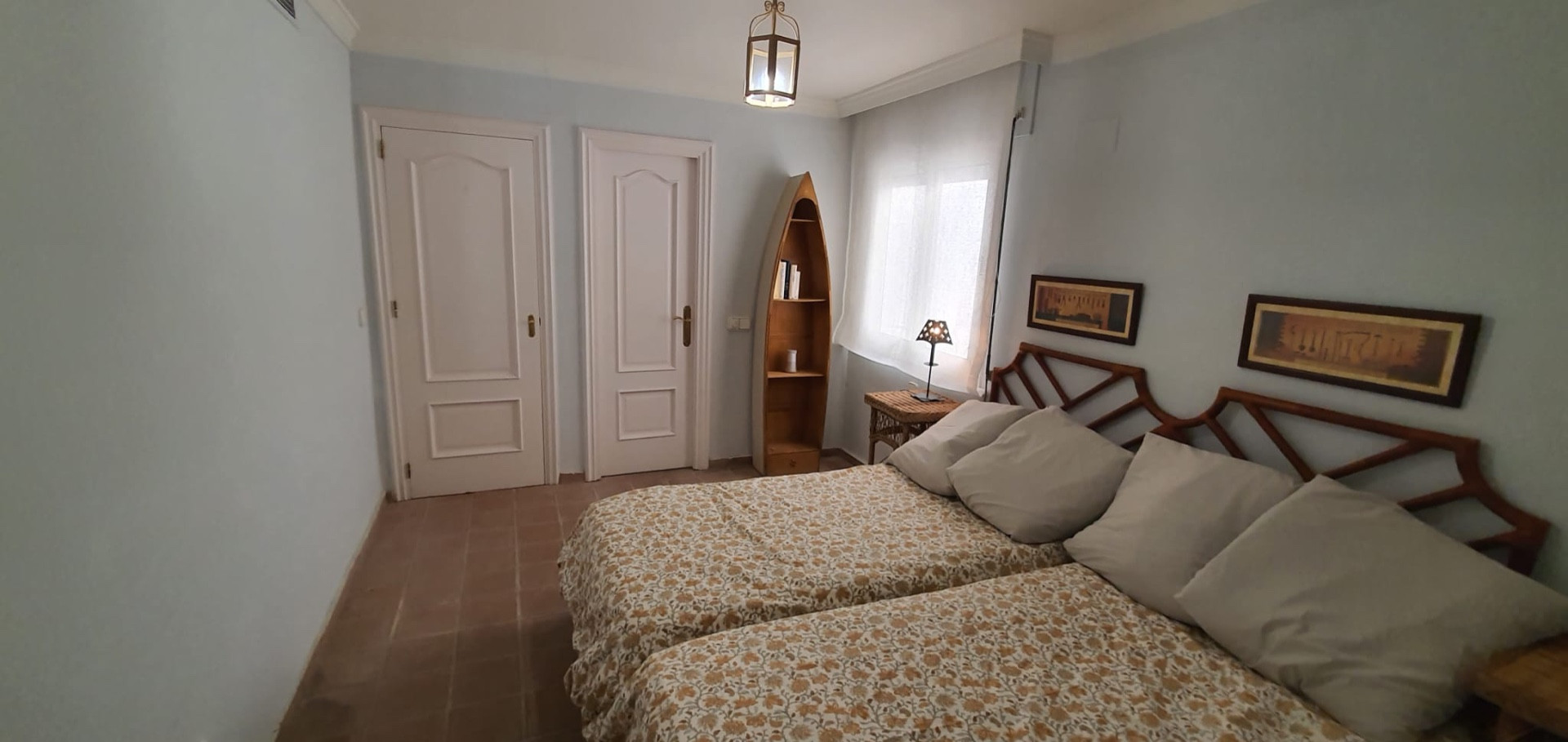 Apartamento situado en la planta baja con jardín privado orientado al sur. Consta de 4 dormitorios y 3 baños, salón comedor, cocina completa, terraza con jardín, 2 plazas de garaje. Se encuentra localizado muy cerca de la playa y a poca distancia club de playa y tenis el Octógono.